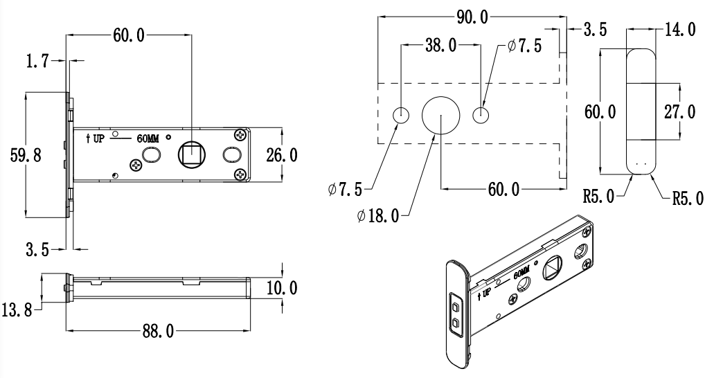 4.Built-in positioning bead for handle knob, make closing and then locking doors with good experience feeling.